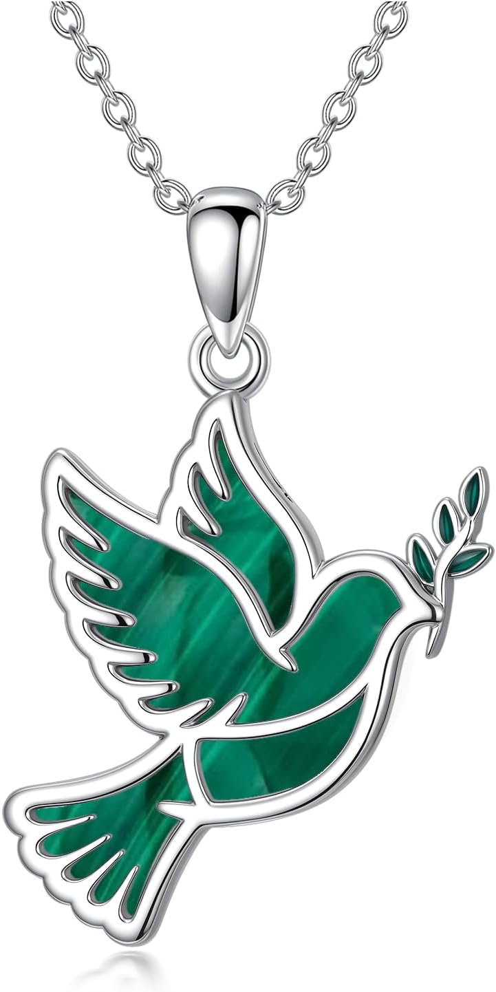 Dove/Hummingbird/Red Cardinal Necklace 925 Sterling Silver Turquoise/Opal/MoonStone/Malachite Bird Necklace Dove Pendant Jewelry for Women Men