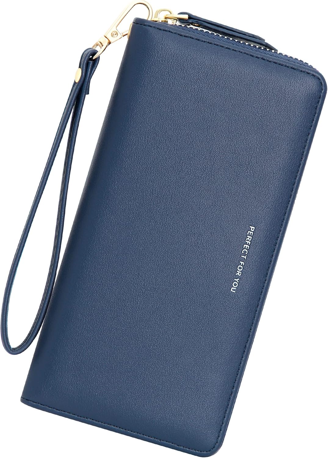 Badiya Womens Wallet Credit Card Holder RFlD Blocking Leather Zip Around Wallets Large Capacity Wristlet