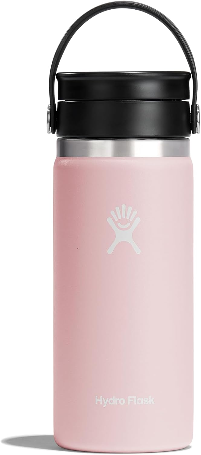 - 16 OZ TRILLIUM PINK FLEX SIP BOTTLE: Designed for hot drinks, Hydro Flask's insulated Wide Mouth water bottle with Flex Sip Lid is cupholder compatible and leakproof. This insulated, stainless steel bottle is ideal for coffee or tea, keeping hot drinks hot and cold drinks cold.