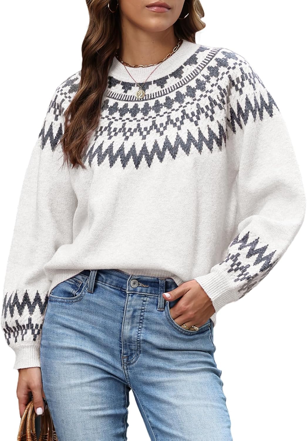 Womens Cashmere Fair Isle Sweaters Vintage Sweater Colorful Wool Crew Neck Long Sleeve Pullover Jumper Tops