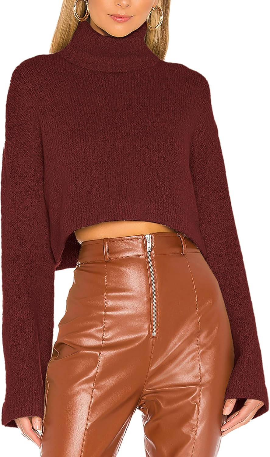 Jumppmile Women's Crop Sweater Turtleneck Long Sleeve Lightweight Fleece Cropped Pullover Sweater Top