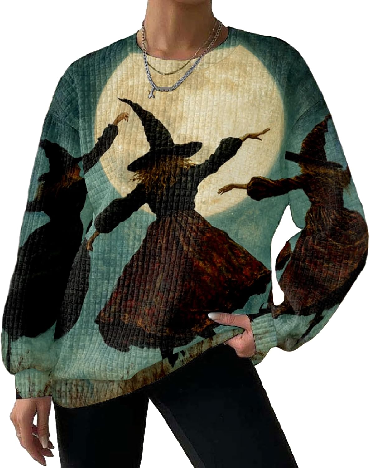 MARSVOVO Sweatshirts for Women Fall Winter 2025 Halloween Witch Pattern Long Sleeve Crewneck Lightweight Casual Outfits