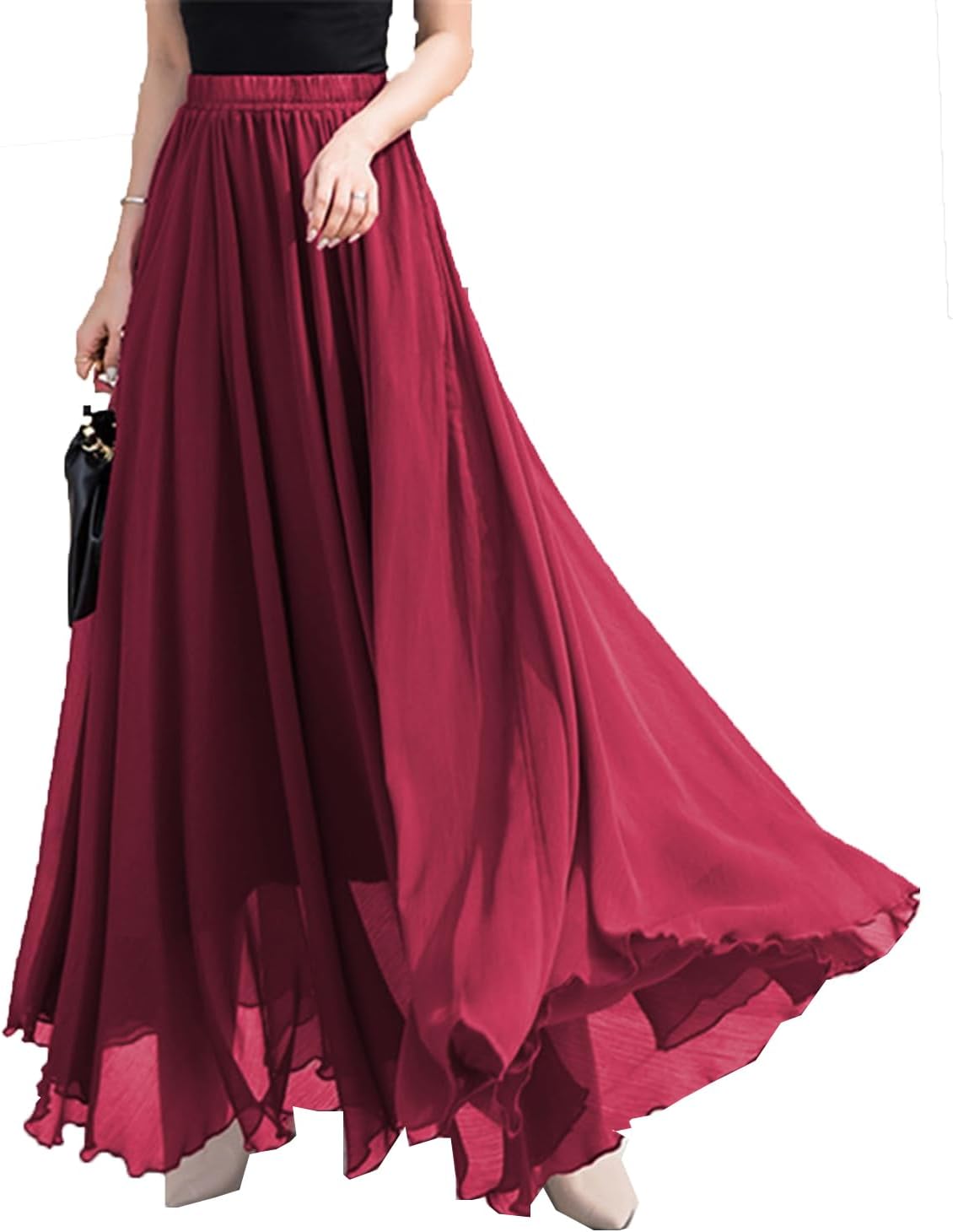 Women’s Elastic Waist Chiffon Maxi Skirt Flowy Full Length Beach Skirt
