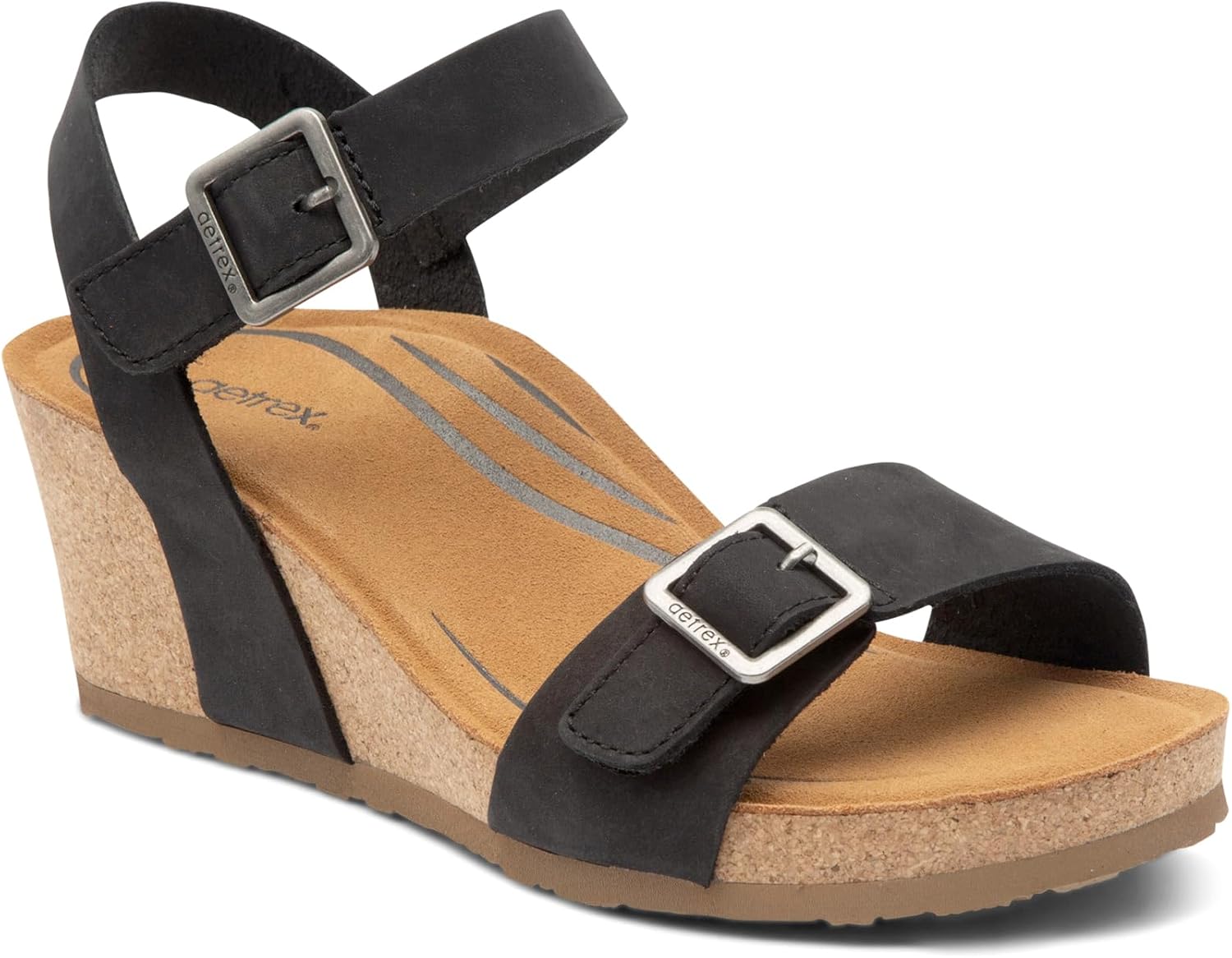 Aetrex Women's Lexa Orthopedic Adjustable Ankle Strap Arch Support Wedge Sandals