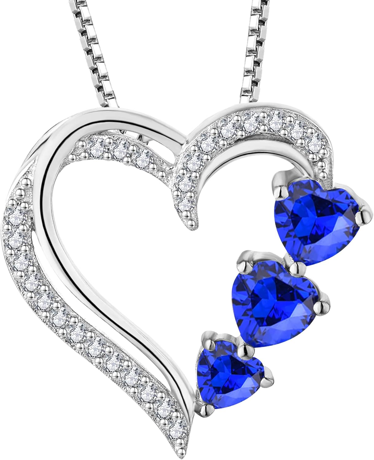 YL Heart Necklace 925 Sterling Silver Love Heart Pendant Gemstones Heart Jewelry for Women