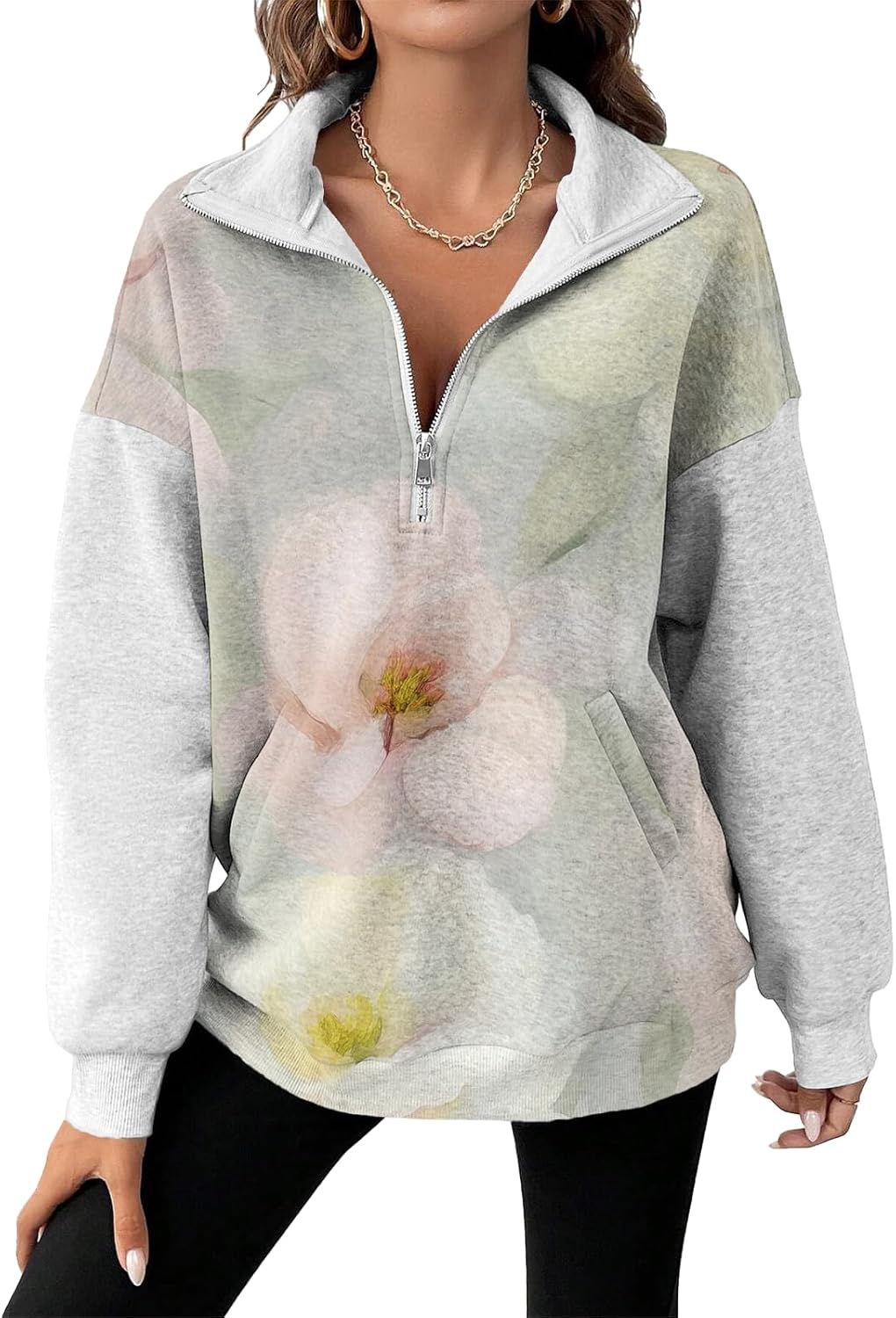Womens Pullover Sweatshirts Quarter-Zip Disign Novelty Sweatshirts Casual Pullover Oversized Fall Wear 2025