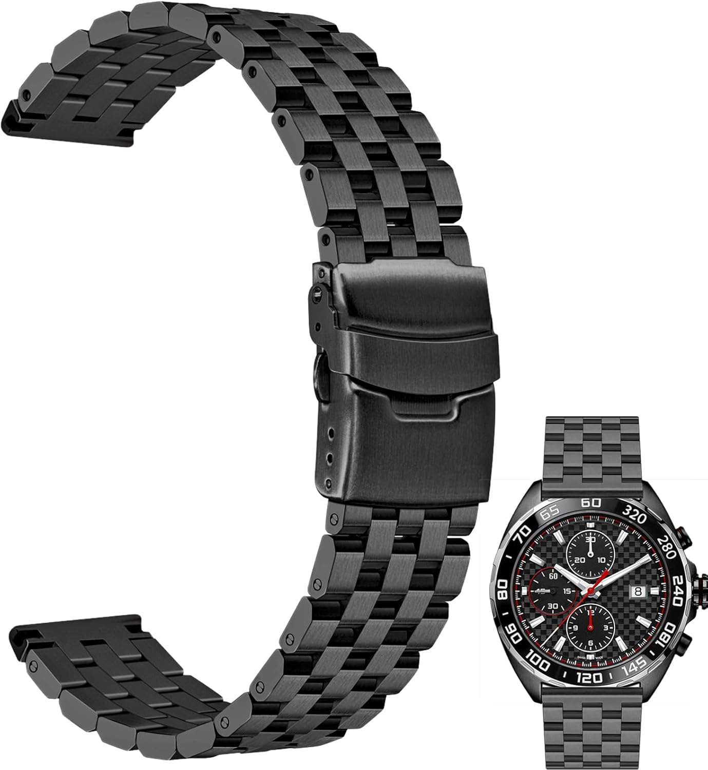 Juntan 18mm 20mm 22mm 24mm 26mm Stainless Steel Watch Band Replacement Metal Brushed Watch Strap Bracelet Deployment Double FlipLock Buckle Silver Black
