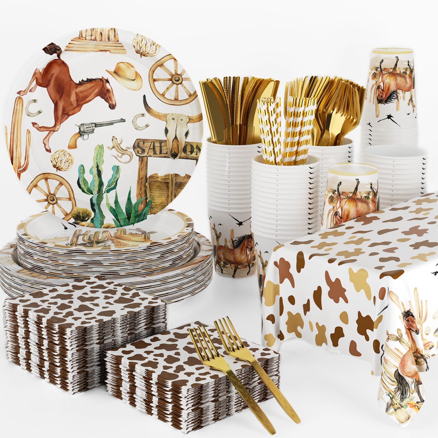 - 【Easy to Clean】Use our disposable Western cowboy party tableware; It can enable you to fully enjoy your birthday party. There is no need to worry about the cleaning issue either. Spend more time with family and friends