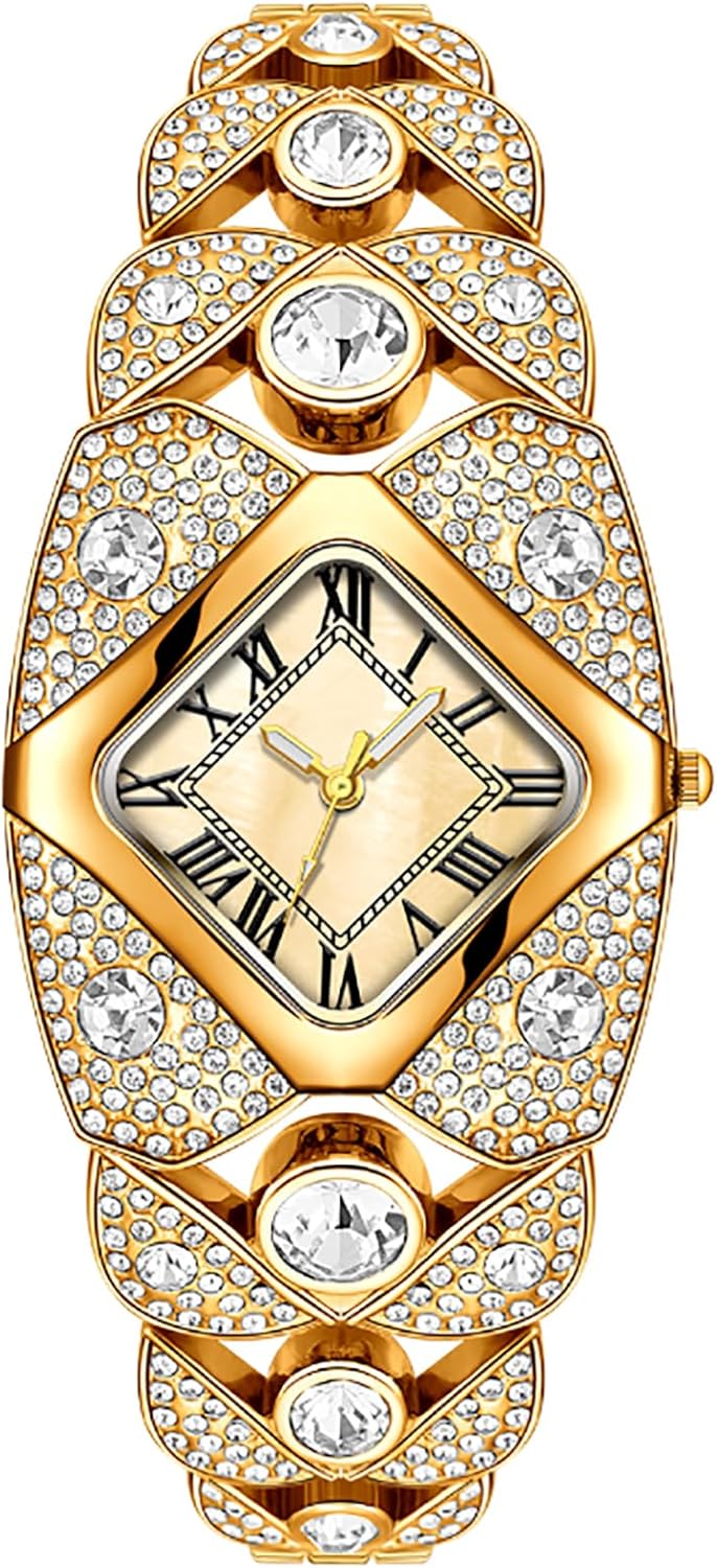 BESTKANG Elegant Women's Luxury Watch Rhombic Square Rhinestone Bracelet Roman Numerals Dial Quartz Watch Ladies Dress Analog Wrist Watches for Women