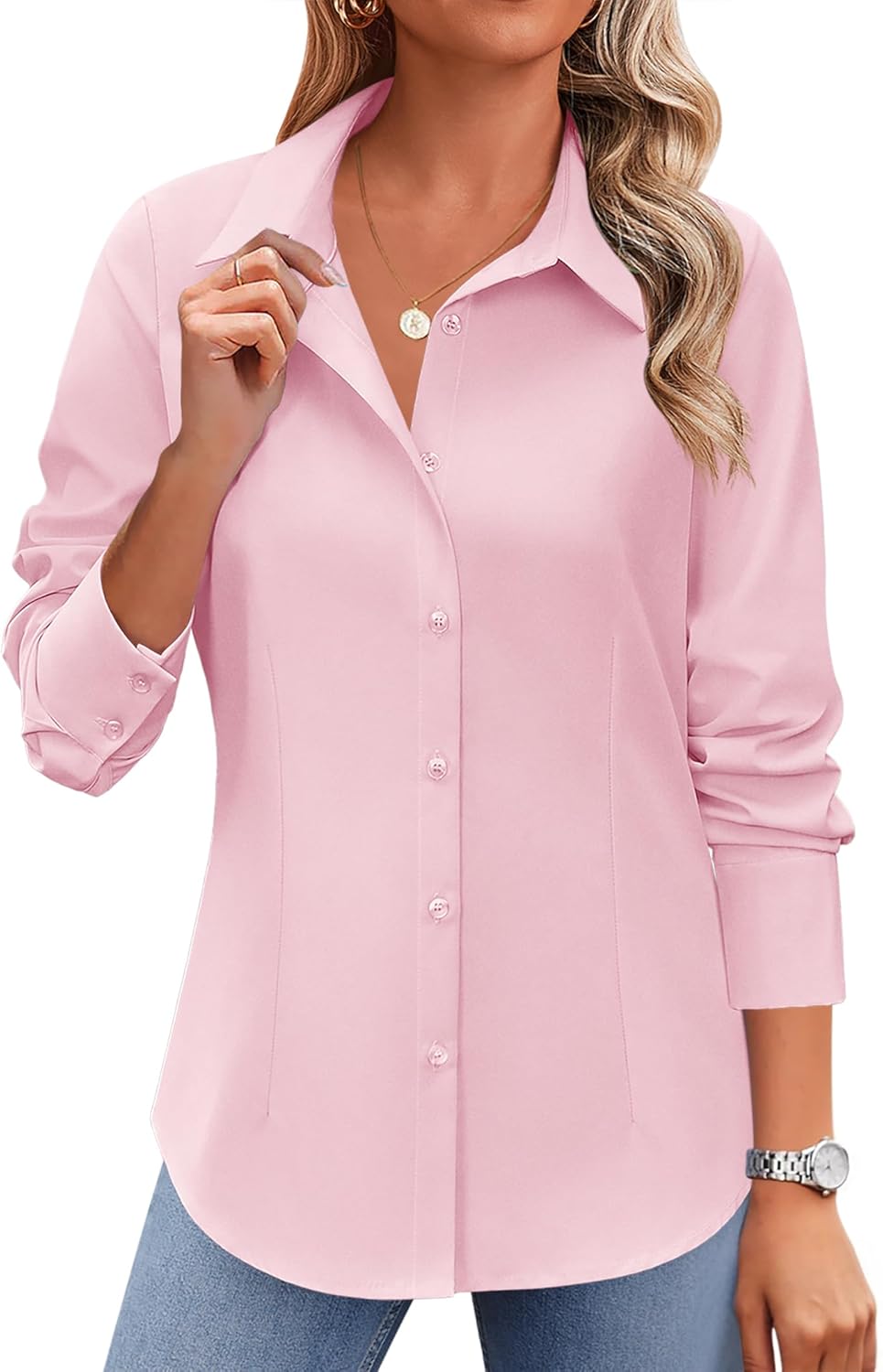 Zeagoo Button Down Shirts for Women Wrinkle Free Long Sleeve Collared Dress Blouses Casual Work Office Tunics Tops