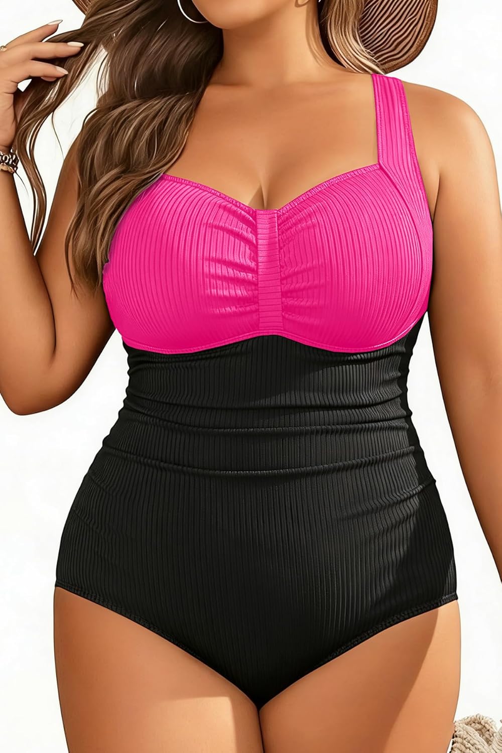 Aqua Eve Plus Size One Piece Swimsuit for Women Tummy Control Bathing Suit Ribbed Swimwear
