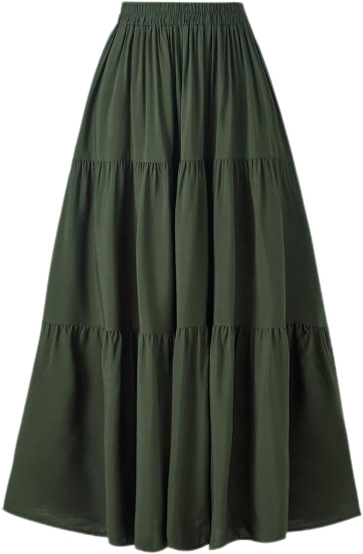 OSTOO Women's Summer Long Flowy Renaissance Skirt with Pockets - Boho High Waist A-Line Maxi Skirt