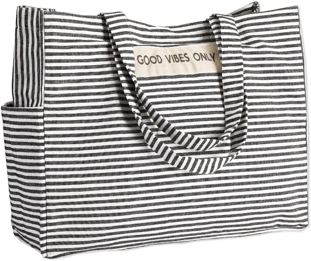 Folkulture Beach Bag For Women | 17 x 14 Inch - 100% Cotton Beach Tote Bag With Zipper Pocket Inside, Large Woven Pool Bag