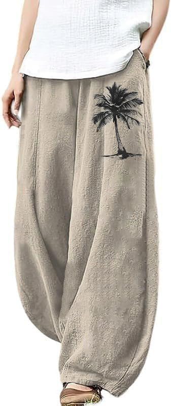 Summer Pants for Women 2024 High Waisted Cotton Linen Palazzo Pants Wide Leg Long Lounge Beach Trousers with Pocket