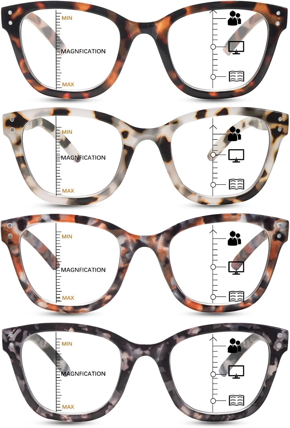 COJWIS Progressive Multifocus Reading Glasses for Women - 4 Pack Computer Readers with Blue Light Blocking and Spring Hinge