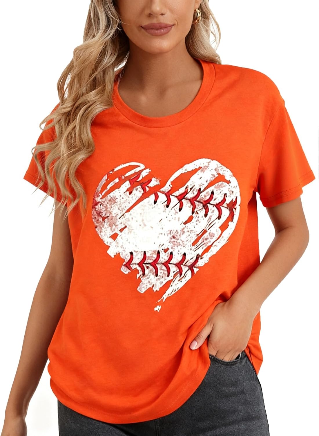 Women's Baseball Shirts Women Baseball Heart Graphic Tees Game Day Shirt Heart Printed Short Sleeve Tops