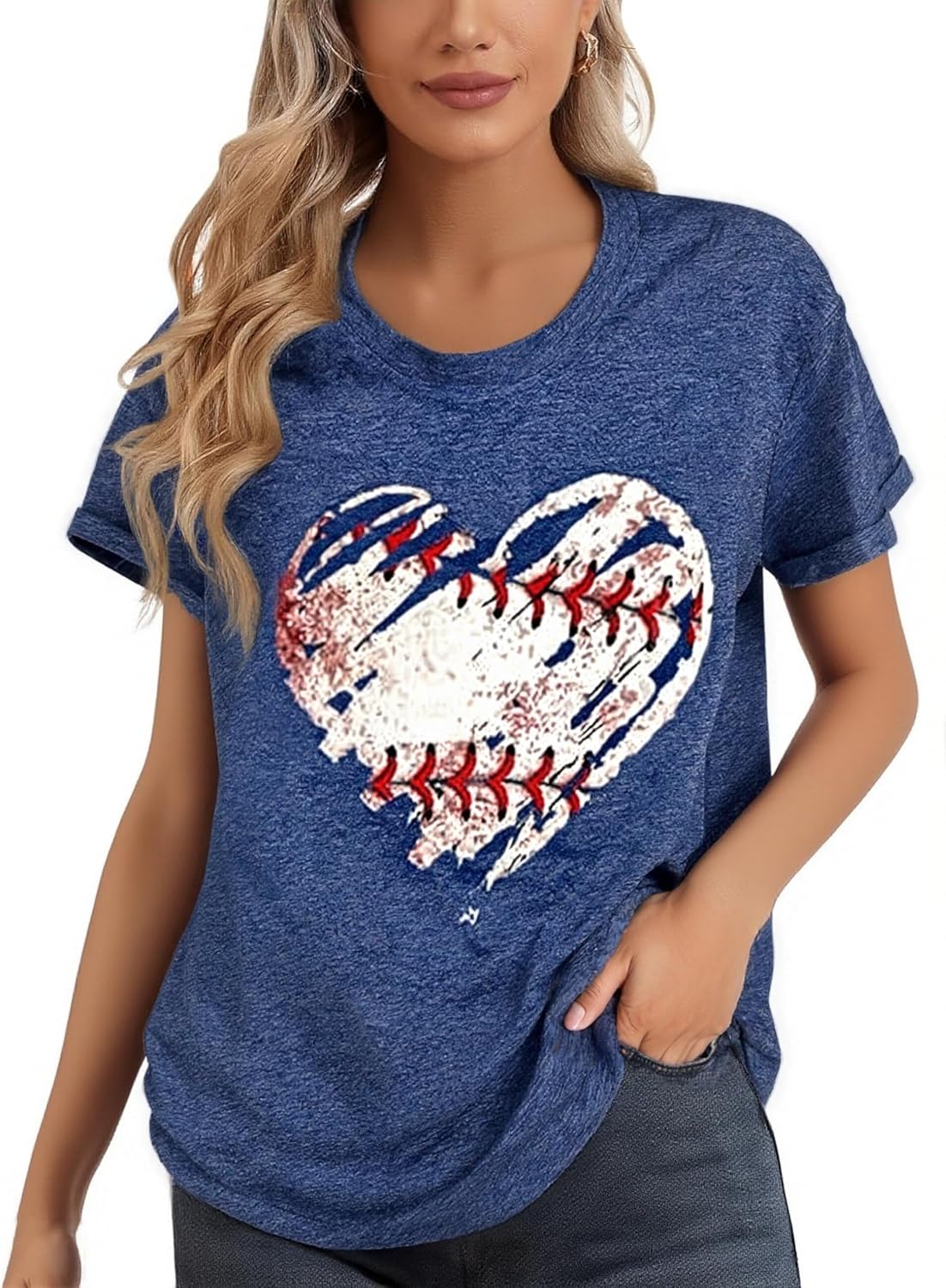 Women's Baseball Shirts Women Baseball Heart Graphic Tees Game Day Shirt Heart Printed Short Sleeve Tops