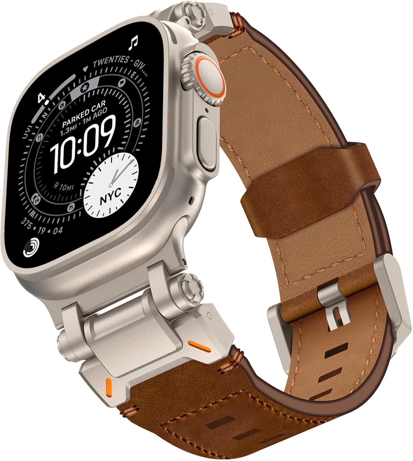 KADES Top Grain Genuine Leather Band for Apple Watch Ultra 3/2/1 49mm Men, Metal Connectors for Apple Watch Series 11/10/SE3/9/8/7/SE2/6/5/4/SE/3/2/1 46mm 45mm 44mm 42mm