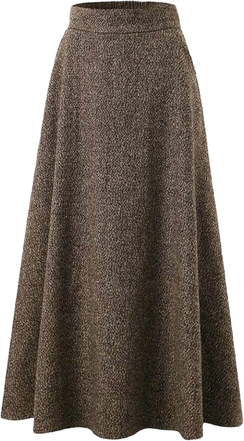 Choies Women Winter Skirt,Aline Long Fall Skirt with Pockets and High Elastic Wasit