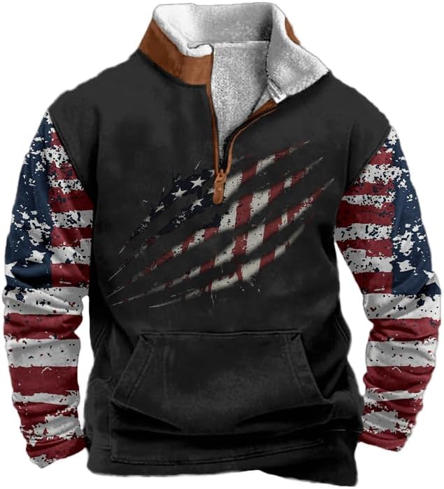 Patriotic Hoodies for Men American Flag Graphic Hoodie Fleece Mens Pullover 1/4 Zip Sweatshirts with Pockets