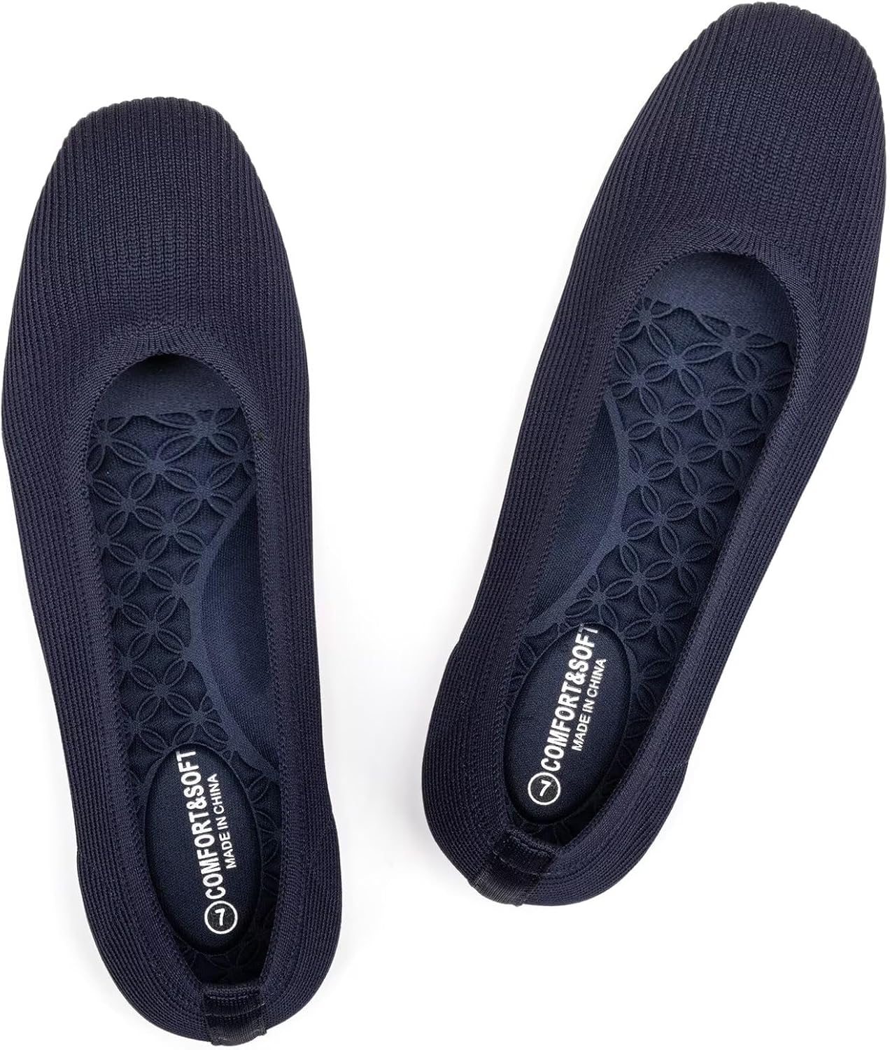 Frank Mully Womens Square Toe Flat Shoes Comfortable Knitted Flats Work Flats for Woman