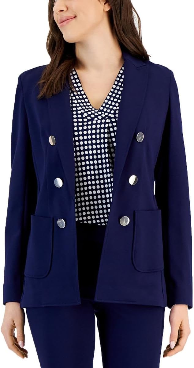 Compression Collection Faux Double Breasted Jacket With Patch Pockets