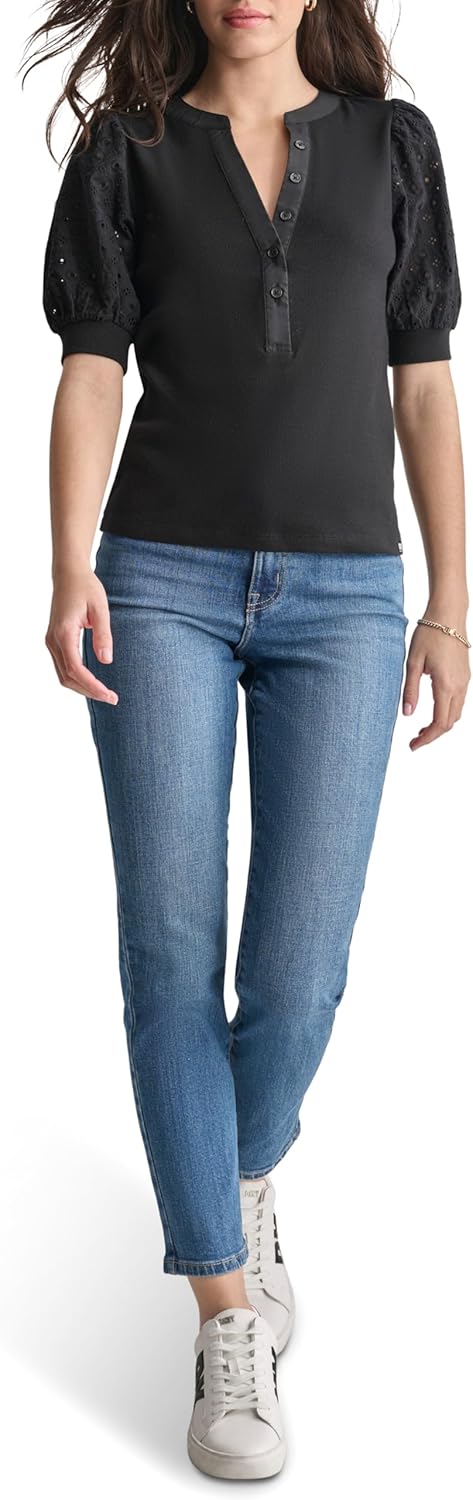 DKNY Womens V-Neck Short Sleeve Trendy Warm Weather