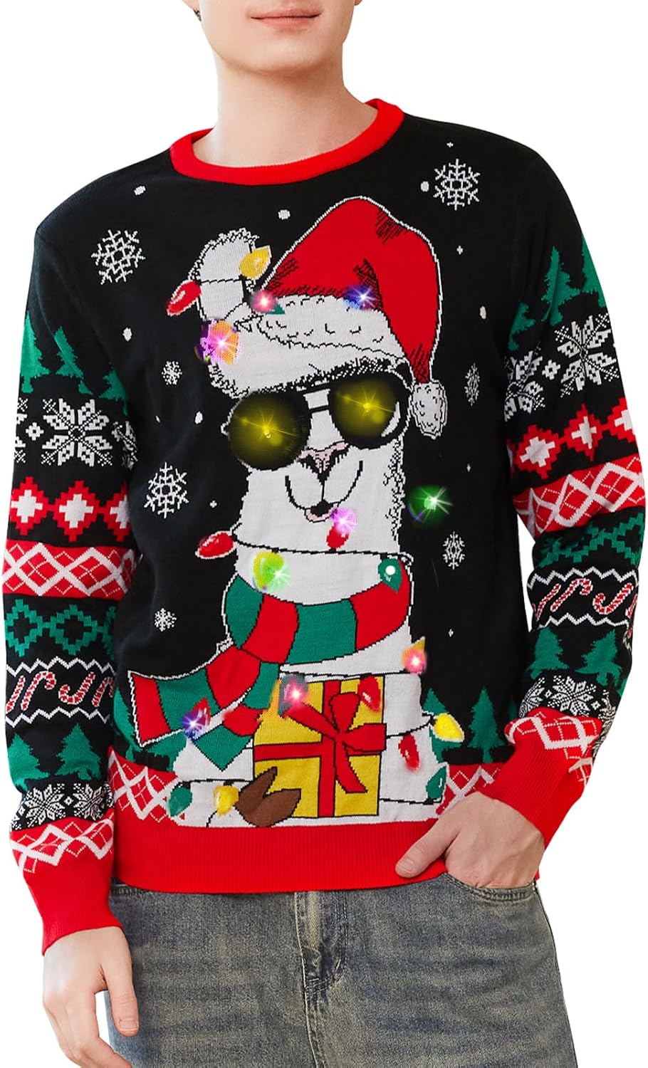 Goodstoworld Men/Women Light Up Knitted Ugly Christmas Sweater with Multi-Colored Led Flashing Lights