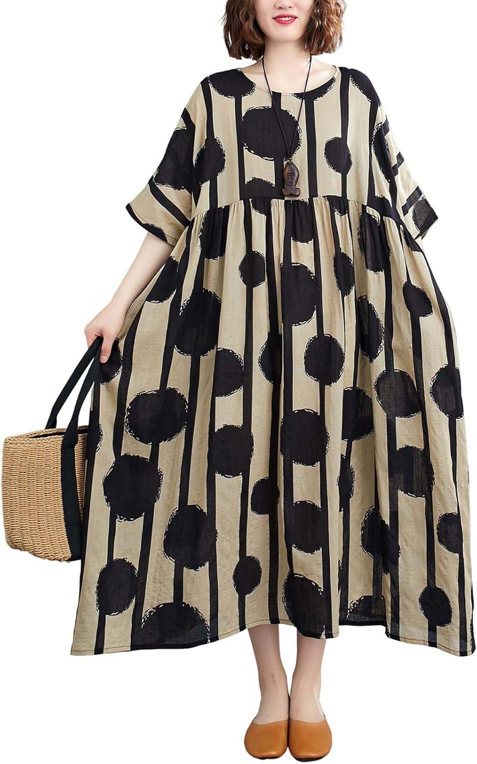 Women Plus Size Casual Dresses Polka Dot Print Round Neck Short Sleeve Oversized Loose Summer Dress with Side Pockets