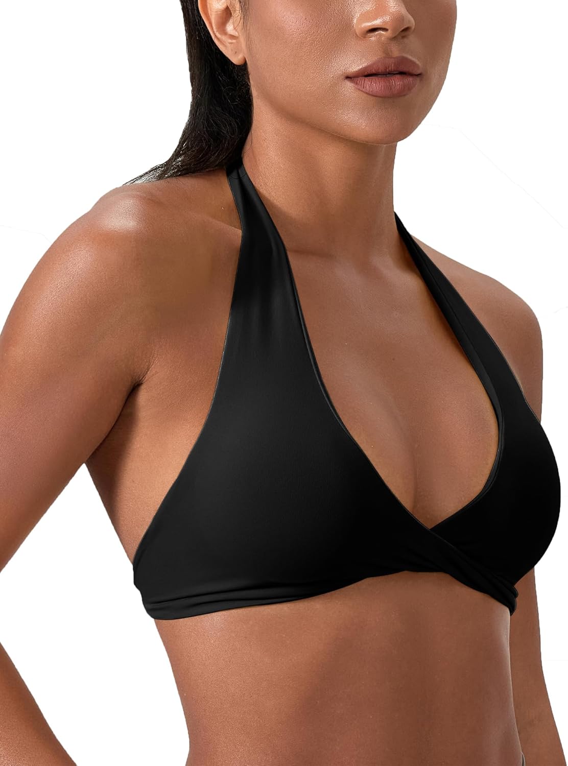 Sports Bra for Women Seamless Halter Padded Yoga Bras Backless Gym Workout Crop Tank with Built in Pads Black