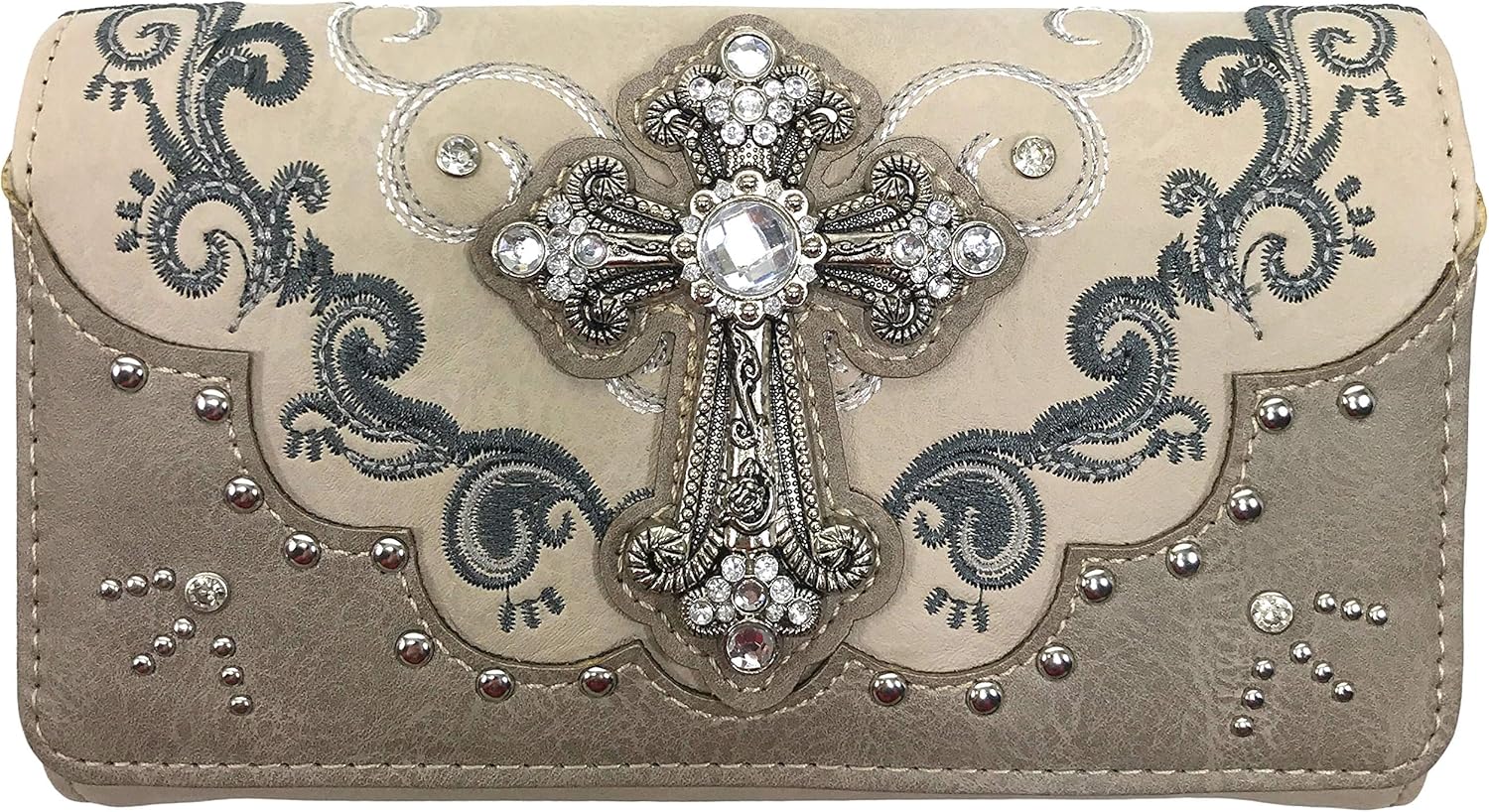 Zelris Western Silver Cross Turquoise Women Crossbody Wrist Trifold Wallet