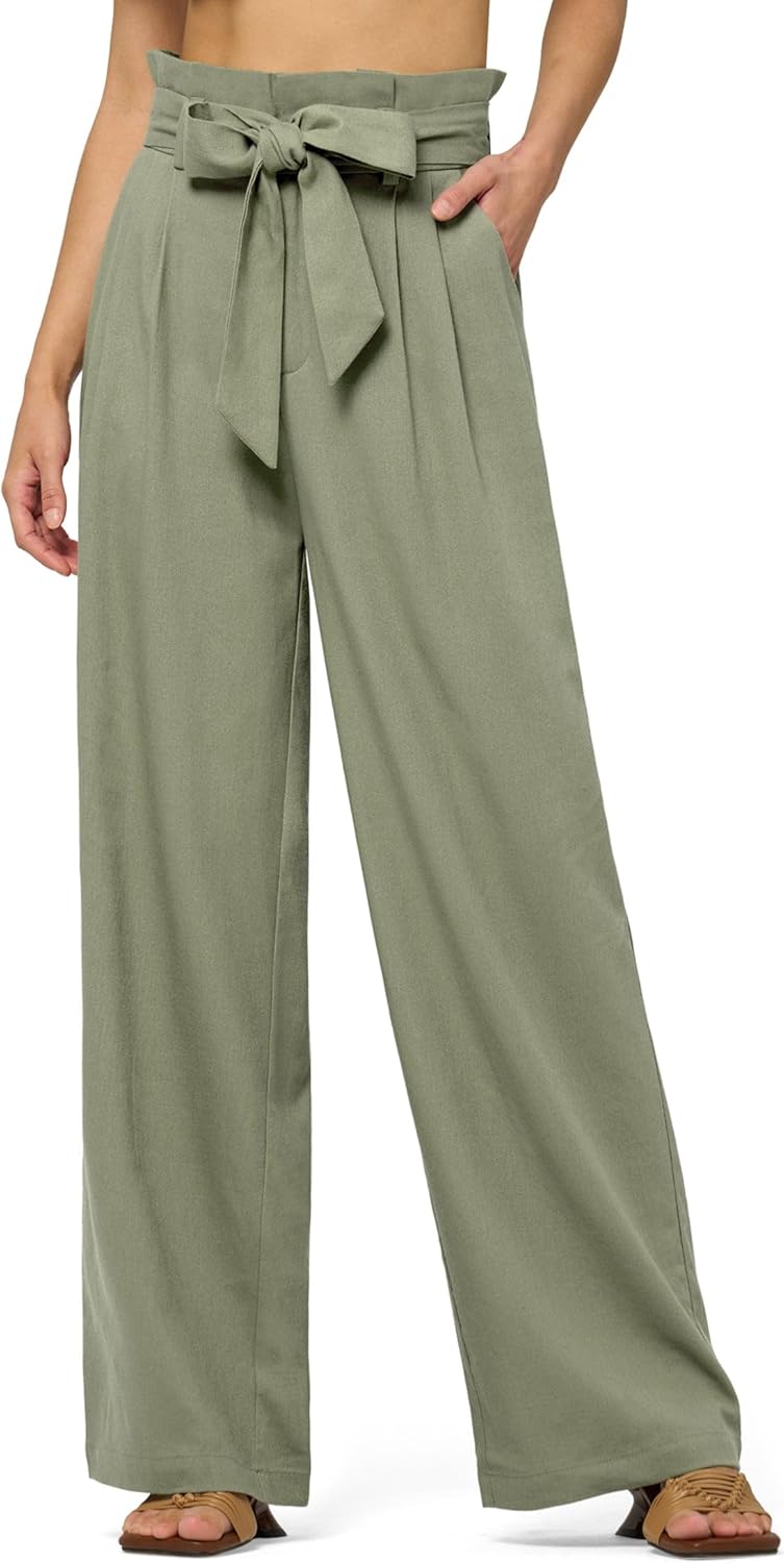 Willit Women Linen Pants Casual Wide Leg Dress Pants High Waisted Paperbag Work Trousers Summer Tie Knot Pockets 28"/30"/32''