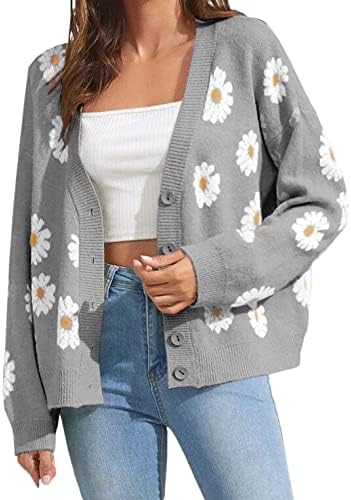 Women's Floral Print Cardigan Long Sleeve Open Front Button Down V Neck Knitted Sweaters