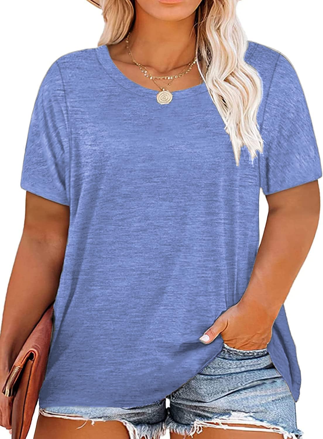 Plus Size Summer T Shirts Women Tops Short Sleeve Round Neck Casual Loose Fit Tee Tshirts Tunic