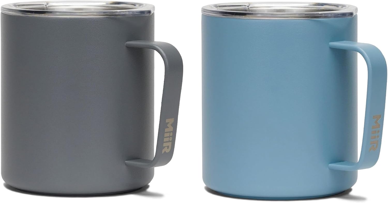 MiiR Camp Cups, 12oz - Double Wall Vacuum Insulated, Stainless Steel with Splash-Proof Slide Lid, Basal Grey and Home Blue
