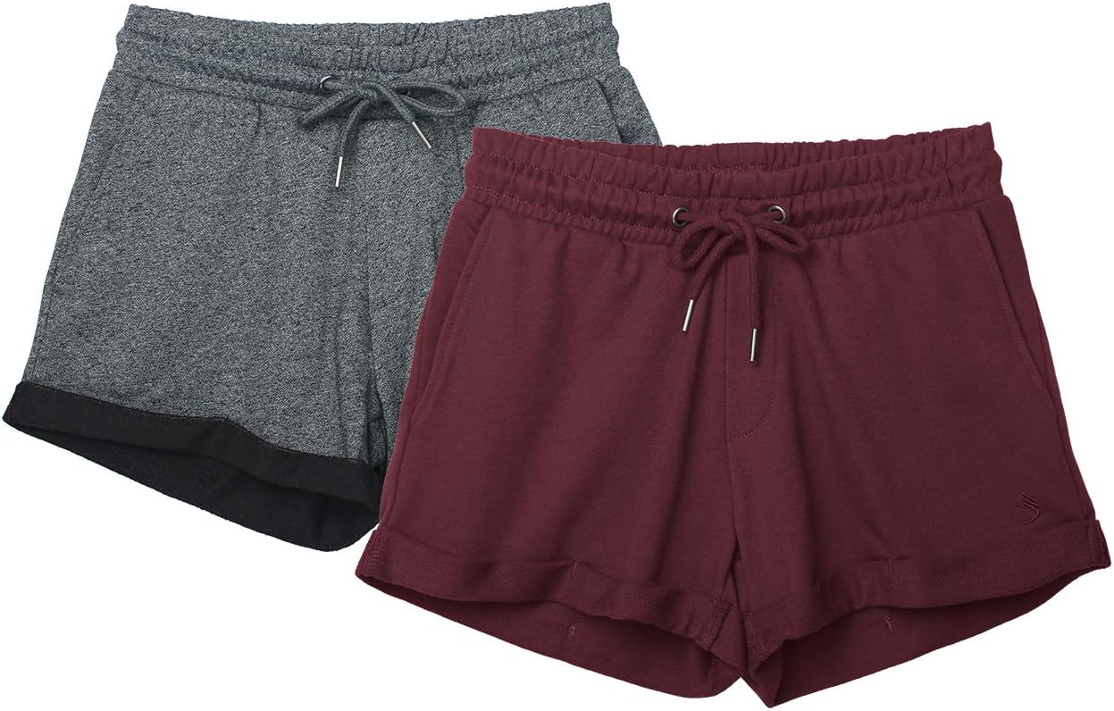 icyzone Workout Lounge Shorts for Women - Athletic Running Jogging Cotton Sweat Shorts(Pack of 2)