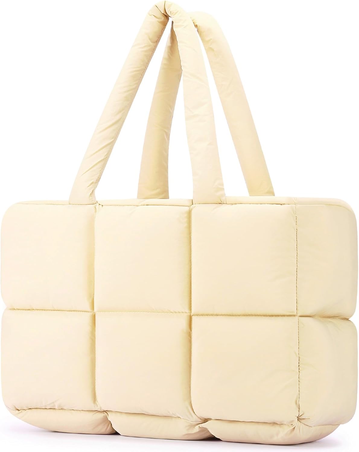 Mossio Travel Puffer Tote Bag for Women - Large Quilted Shoulder Bag Handbag Puffy Weekender Overnight Bag for Shop Work Gym