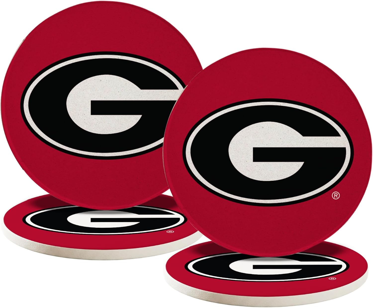 Desert Cactus University of Georgia Circle Ceramic Coasters 4 Pack Bulldogs UGA Dawgs Absorbent Drink Coasters with Cork Backing (Design A)