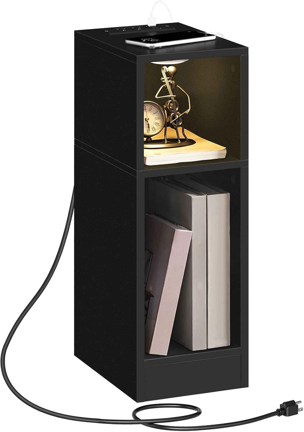 - LED Smart Sensor Light: The narrow beside table boasts a rechargeable round LED sensor light that offers both sensor and constant-on modes to meet different needs. The sensor light comes with mounting accessories, allowing for flexible installation