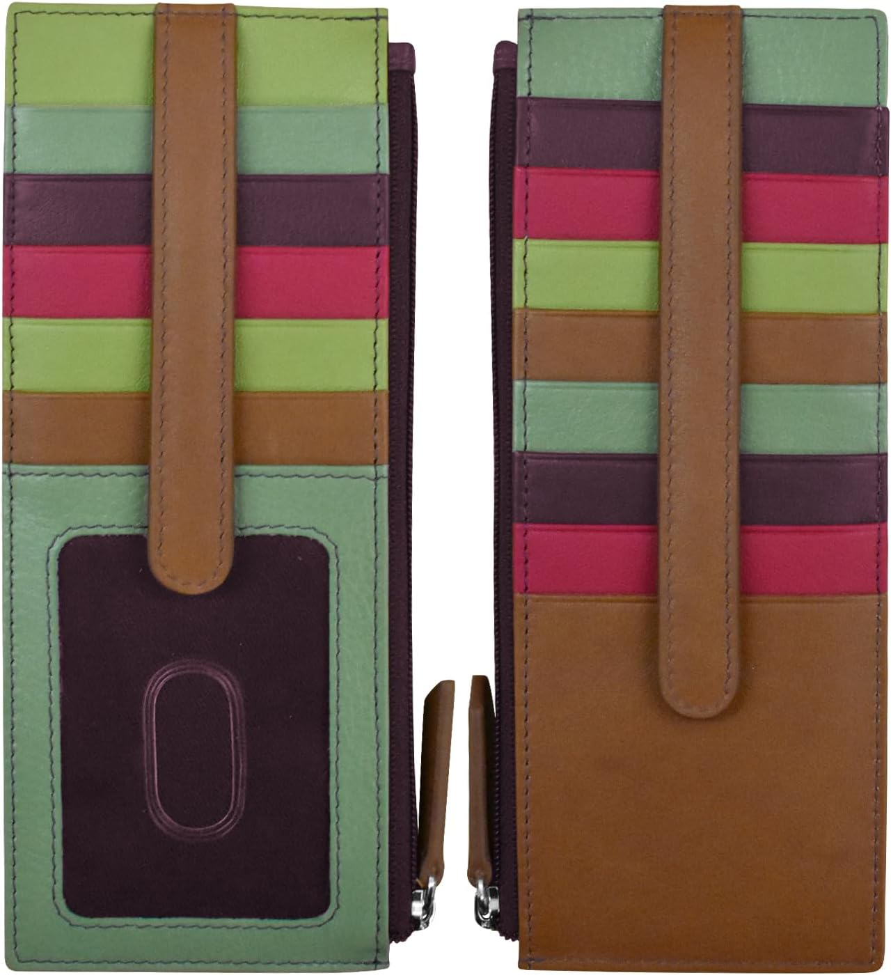 ili New York Long Double Sided Slim Wallet, RFID Blocking Card Holder with ID Window and Side Zip Pocket for Men and Women, Sage Multi