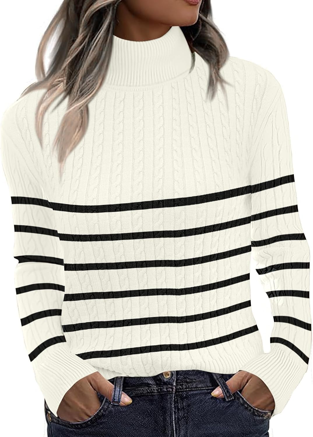 Zeagoo Womens Sweaters Turtleneck Cable Knit Long Sleeve Pullover Cute Fitted Trendy Basic Fall Winter Tops