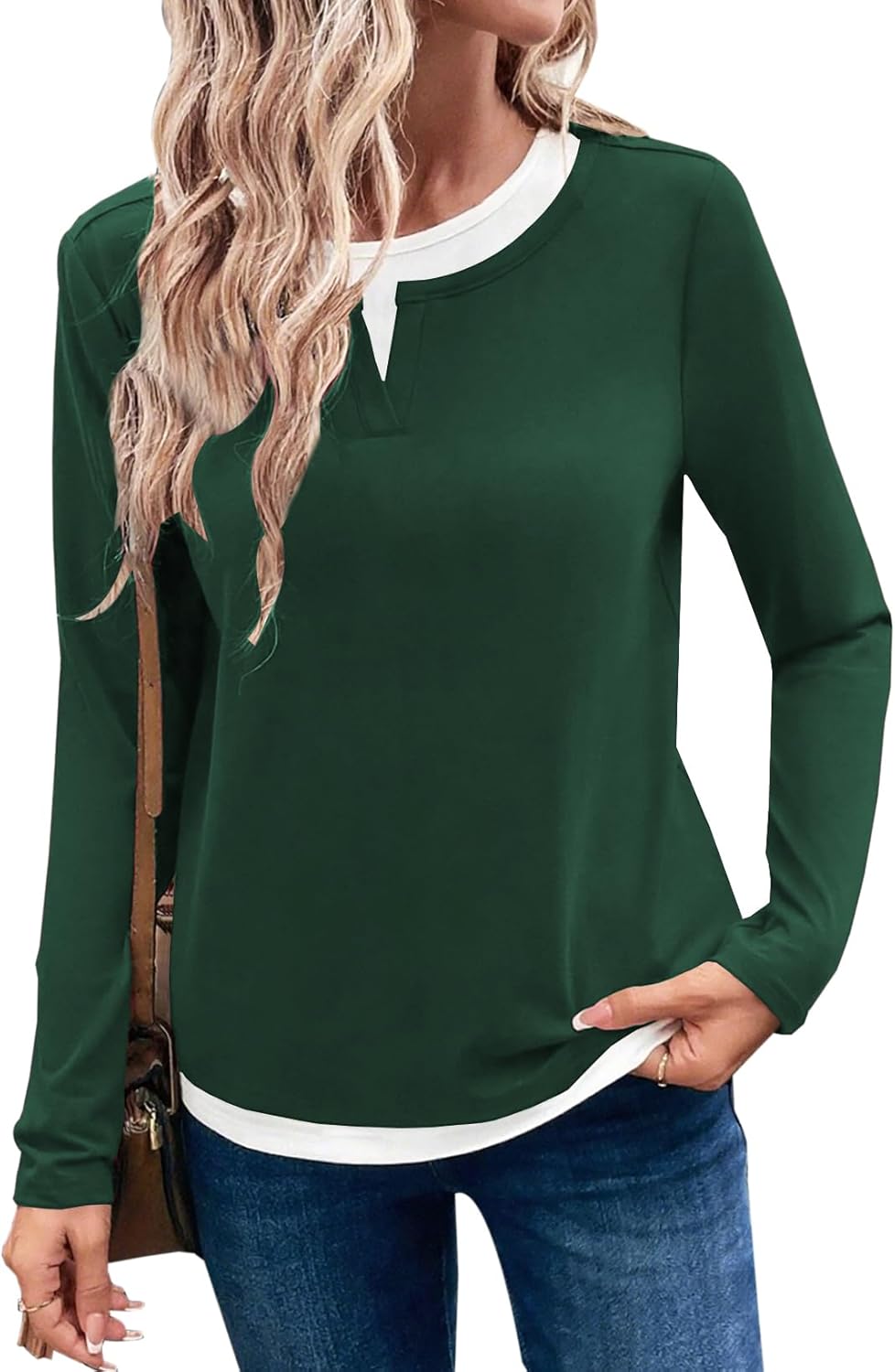 LOLONG Women Fall Long Sleeve Color Block T Shirts 2025 Casual Crew Neck Tops Tees