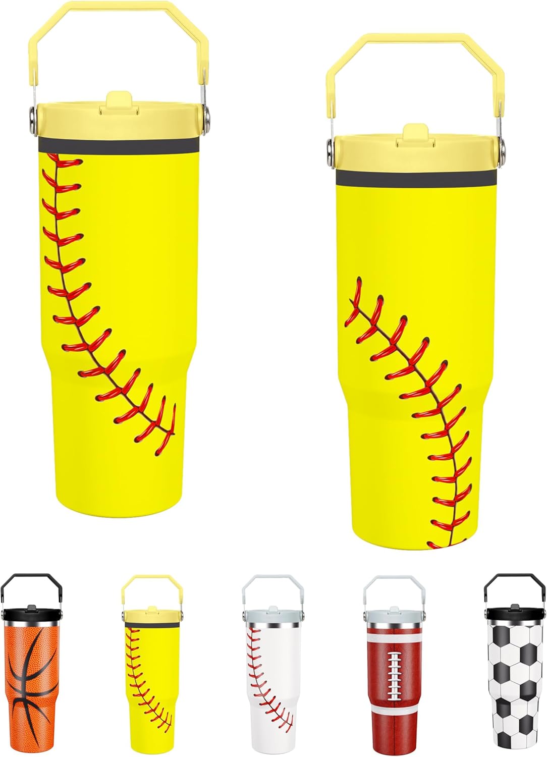 - [Versatile On-the-Go Tumbler]: Our versatile Softball 30 oz flip straw tumbler is perfect for a variety of drinks, whether you're sipping water, smoothies, or iced coffee. With a built-in handle and flip straw, it offers convenient portability and easy sipping. Just pour in your favorite beverage and enjoy hassle-free hydration wherever you go!