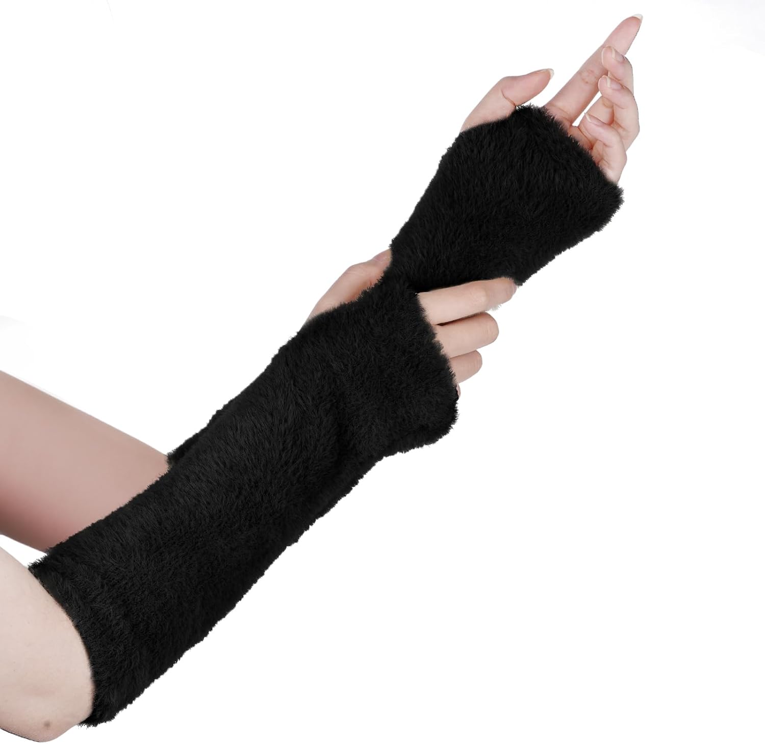 Lystaii Arm Warmers Women Faux Fur Fingerless Gloves Y2k Arm Sleeve Winter Kawaii Japanese Cute Fur Mittens