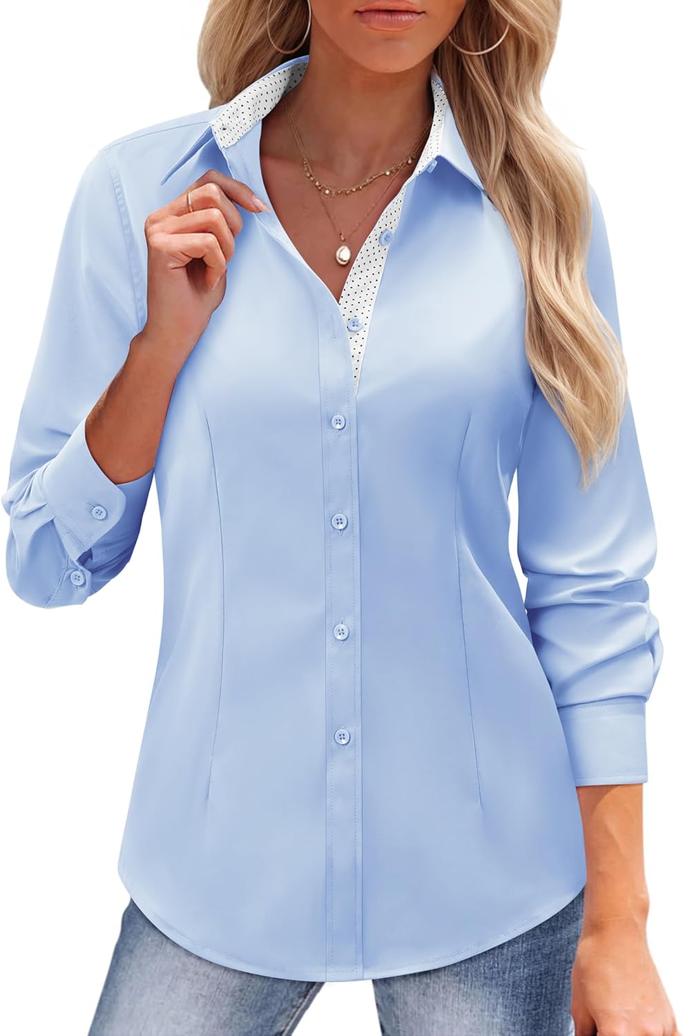 siliteelon Button Down Shirts for Women Dress Shirts Cotton Long Sleeve Shirt for Women Wrinkle Free Stretch Work Blouse