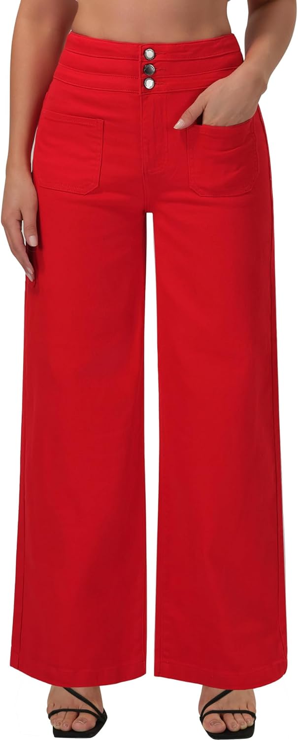roswear Wide Leg Jeans Woman High Waist Stretchy Loose Denim Pants