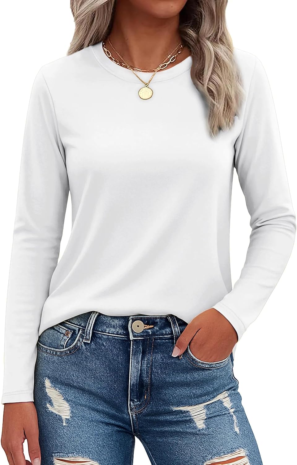 SMENG Womens Long Sleeve Shirt Cotton Blend Crewneck Basic Tops Soft UPF50+ Athleisure Tshirt