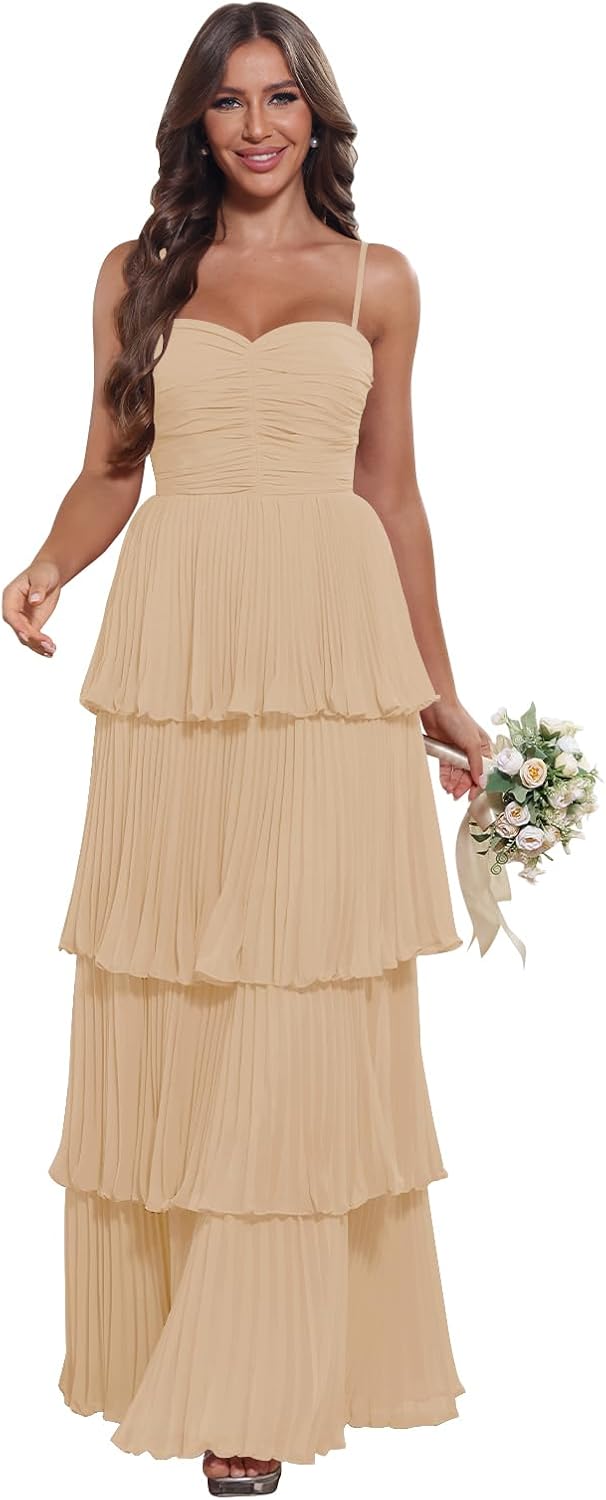 Tiered Pleated Ruffle Bridesmaid Dresses 2026 Long Chiffon A Line Sweetheart Formal Wedding Guest Gowns