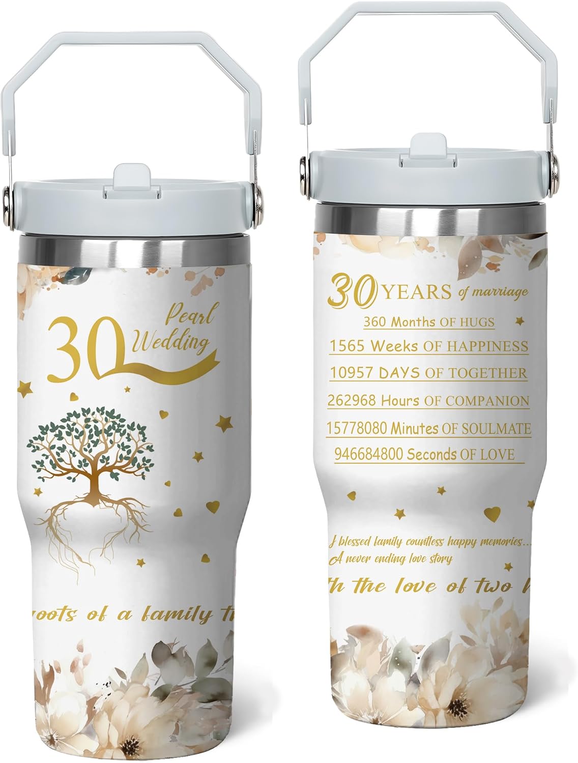 - Celebrating 30th Anniversary Cup: This 30th anniversary wedding gifts is specially designed for 30 years anniversary. Whether you're commemorating your own 30 th anniversary or that of a parent or friend, and 30 year wedding gift anniversary is important, while you both may have everything you need. It can be used as romantic 30 years wedding gifts anniversary cup for husband or wife, surprise anniversary cup for parents, cool anniversary cup for men women.
