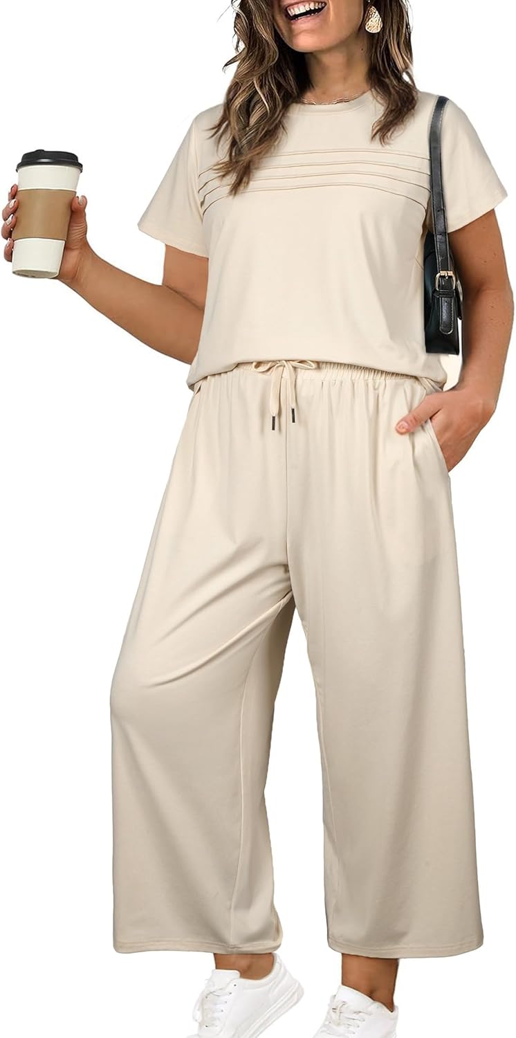 Eytino Plus Size Two Piece Sets for Women Casual Summer Outfits Short Sleeve Tops Wide Leg Pants Lounge Sweatsuits(1X-5X)